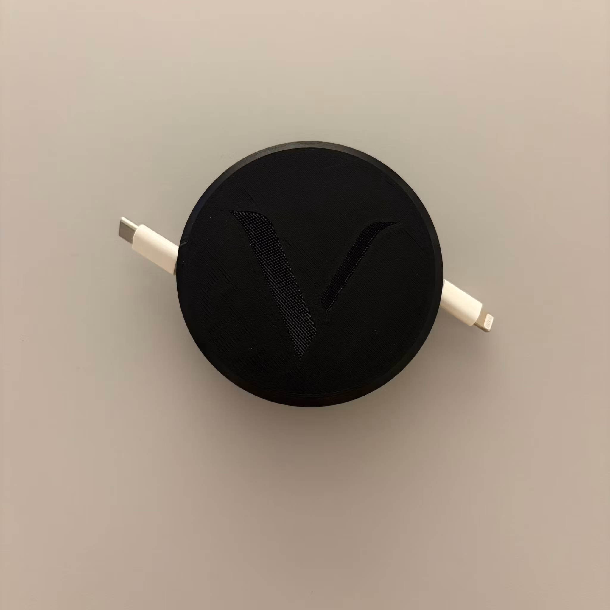 Kabeln rullas smidigt in i det runda höljet, vilket minimerar trassel och skyddar sladden från onödigt slitage. Den kompakta storleken gör den enkel att ta med i vardagen eller på resan.